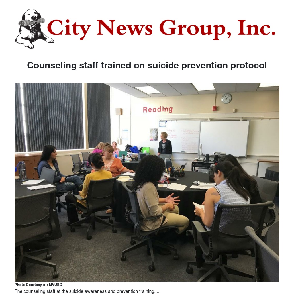 In September, the MVUSD Board of Education adopted a new policy for training on suicide awareness and prevention. Fulfilling that new policy, counselors in district schools have now finished one round of training to ensure they are prepared to identify and assess students with suicidal intentions.