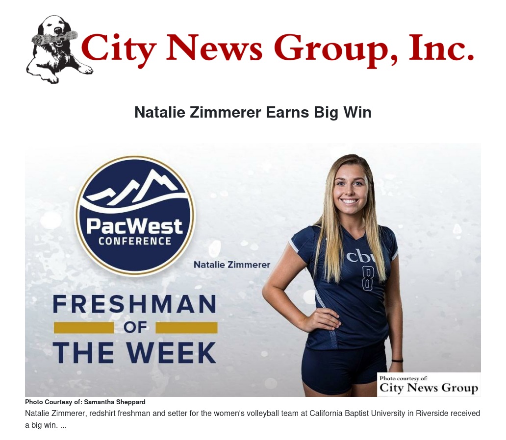 Zimmerer did not show her youth, compiling 43 assists, seven digs, four blocks and two kills in the 25-18, 17-25, 19-25, 25-14, 15-13 win in Irvine. The Lancers hit over .350 in all three set wins, hitting .455 in the first set, .360 in the fourth and .400 in the fifth. It is the third-straight weekly PacWest honor for CBU, but first freshman award.
