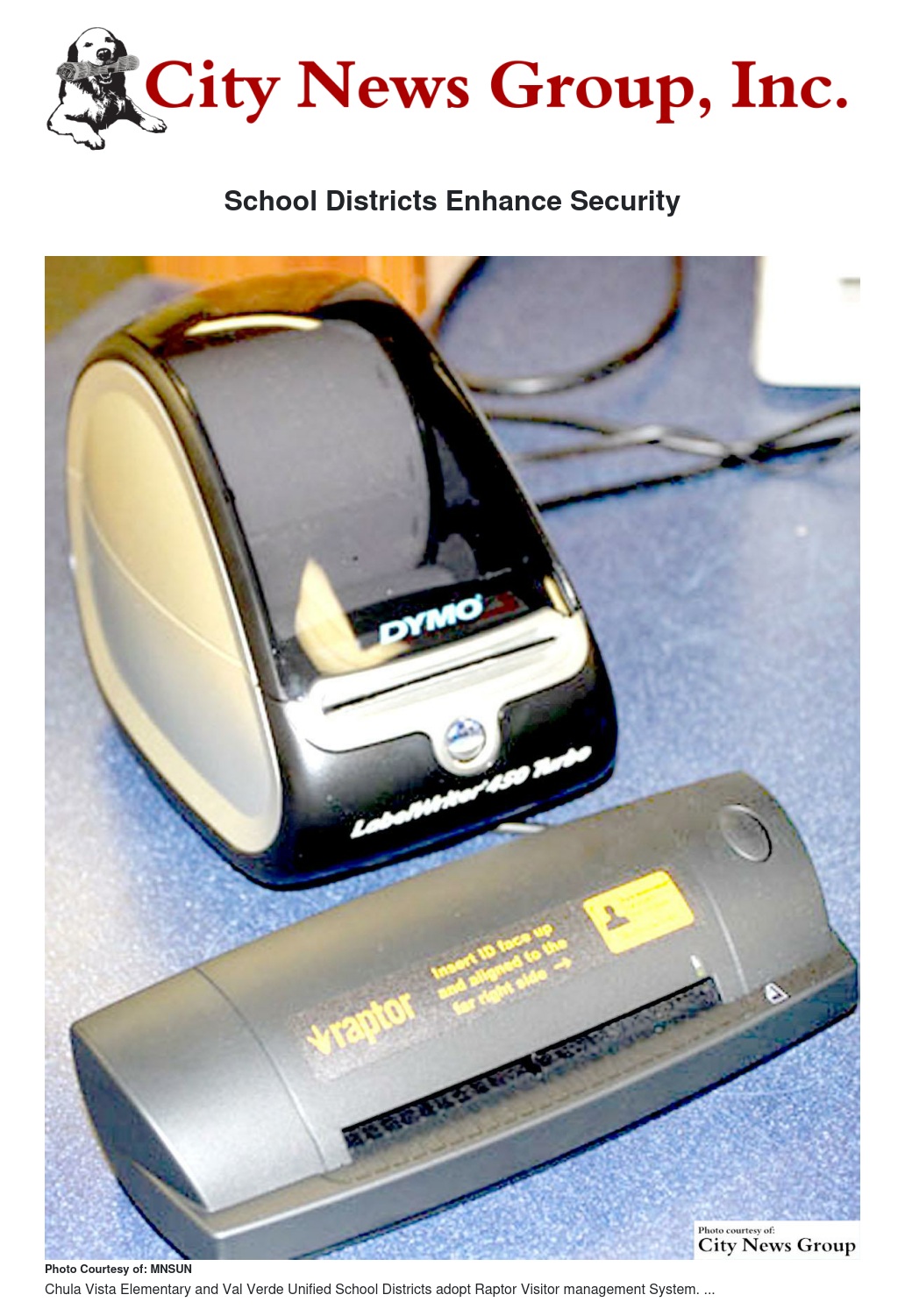 Chula Vista Elementary and Val Verde Unified School Districts are leading the way in Southern California but represent only 70 of the more than 12,000 schools that have implemented the Raptor system nationwide. Chula Vista selected Raptor as a means to provide a district-wide visitor management approach rather than having each school manage its own solution. Val Verde previously used pen and paper to monitor visitors and selected Raptor when administrators realized that visitor management software could enhance their existing safety program for school buildings.