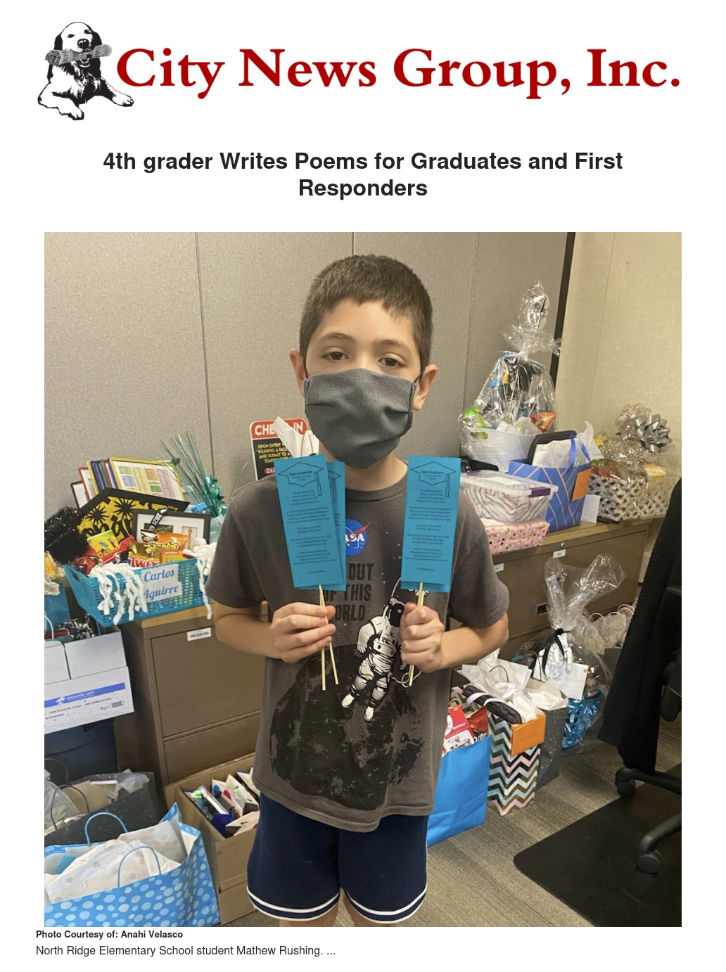 “It’s incredible how a student that young is thinking about others like that,” said Superintendent Dr. Martinrex Kedziora. “For a child to think about everyone that has been battling through this worldwide pandemic and write poems for them, is just beyond amazing. We are so proud to have students like Mathew in our district.”