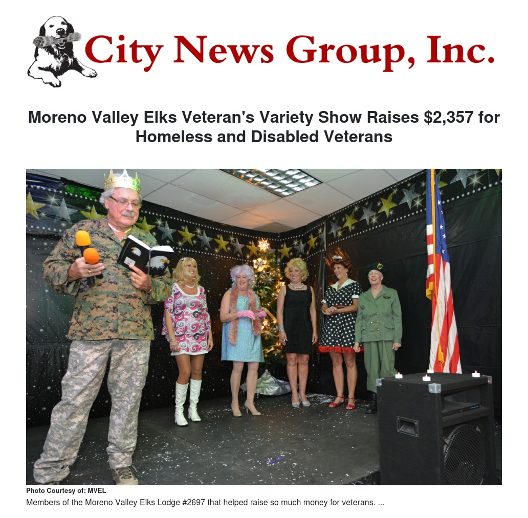 Moreno Valley Elks Veteran's Variety Show Raises $2,357 for Homeless and Disabled Veterans