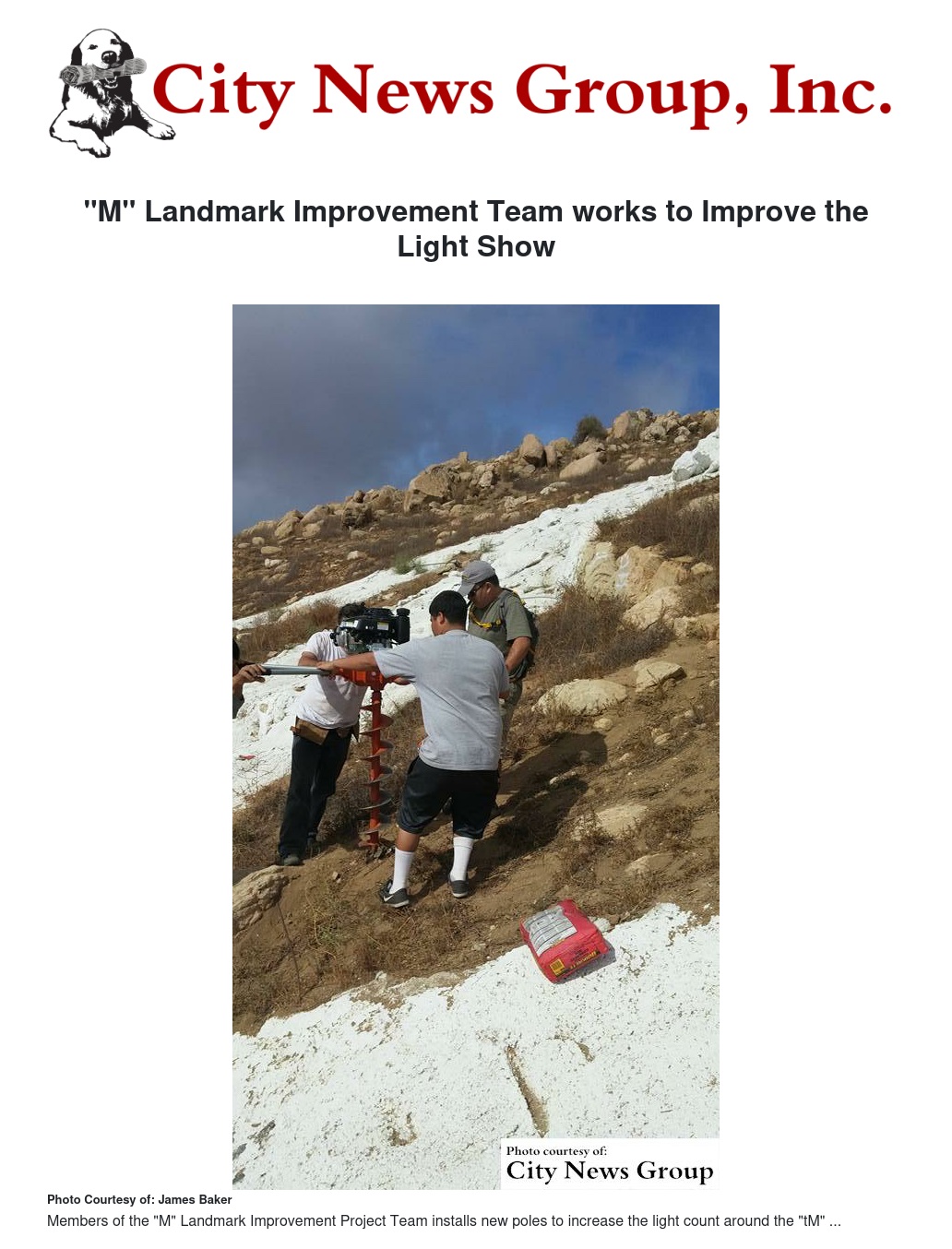 MORENO VALLEY>> The volunteered-based community project known as the "M" Landmark Improvement Project, led by Moreno Valley's Parks Commissioner James C. Baker II and sponsored by the Moreno Valley Noon Rotary Club, has met their goal to improve the Annual "M" Light Show for 2016.