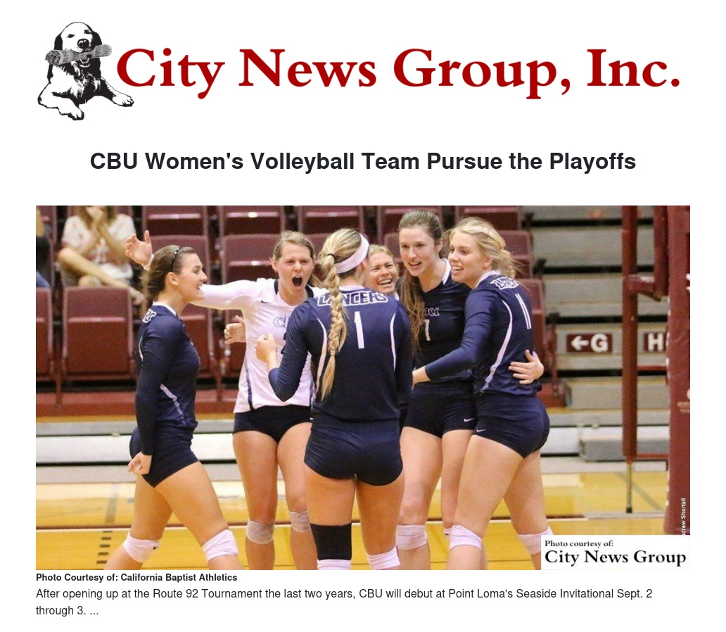 Once the tournament competition winds down, CBU will serve up PacWest play and open at home Sept. 17 against Fresno Pacific at 5 p.m. A trip to three of the conference's Northern California teams: Holy Names on Sept. 21, Notre Dame de Namur on Sept. 23 and Dominican on Sept. 24. is up next.