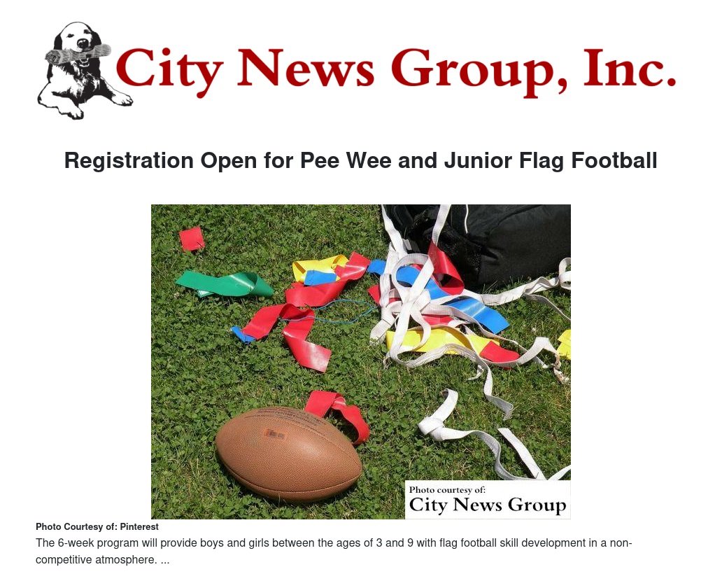 Registration Open for Pee Wee and Junior Flag Football