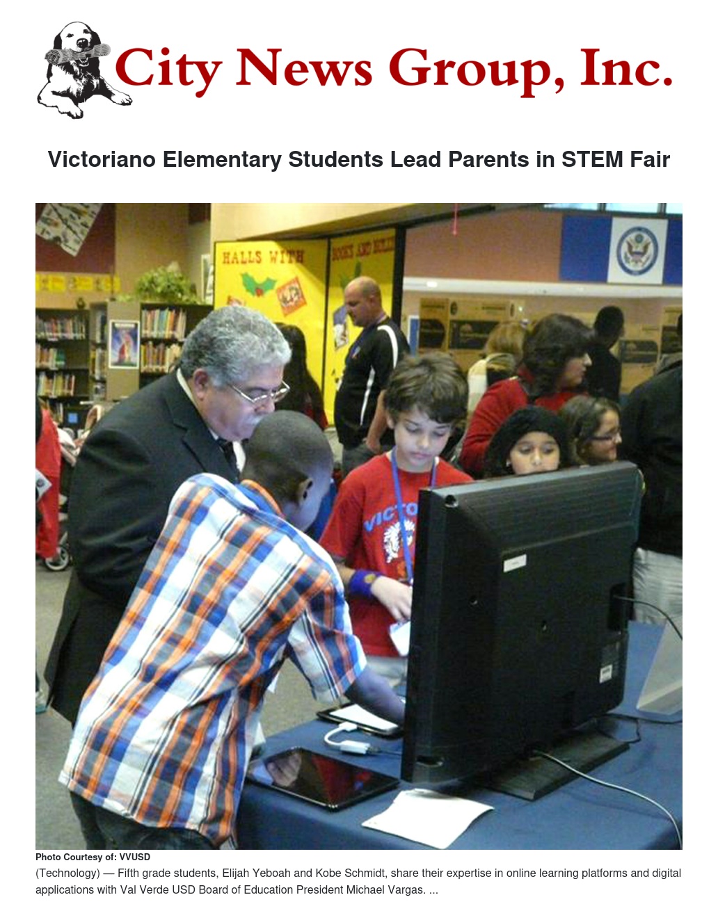 Elementary school students led parents in several scientific discovery lessons, hands-on demonstrations of scientific principals taught at Victoriano Elementary School, at the first STEM (Science, Technology, Engineering, and Math) K-5 school in the Val Verde Unified School District.