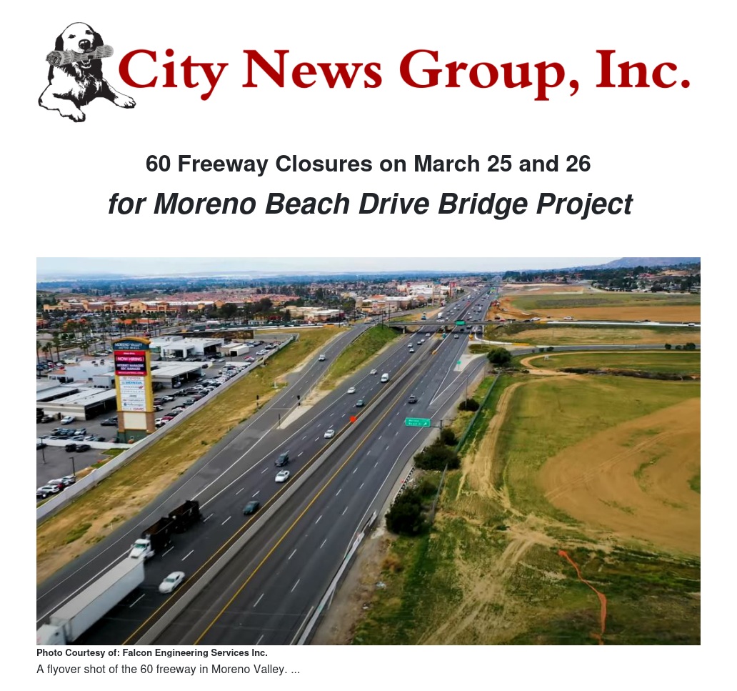 60 Freeway Closures on March 25 and 26 by City of Moreno Valley - City News Group, Inc.