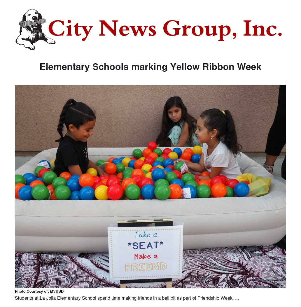 Moreno Valley Unified School District is observing Yellow Ribbon Youth Suicide Awareness and Prevention Week and some of our elementary schools approached the topic in a “friendly” manner.
