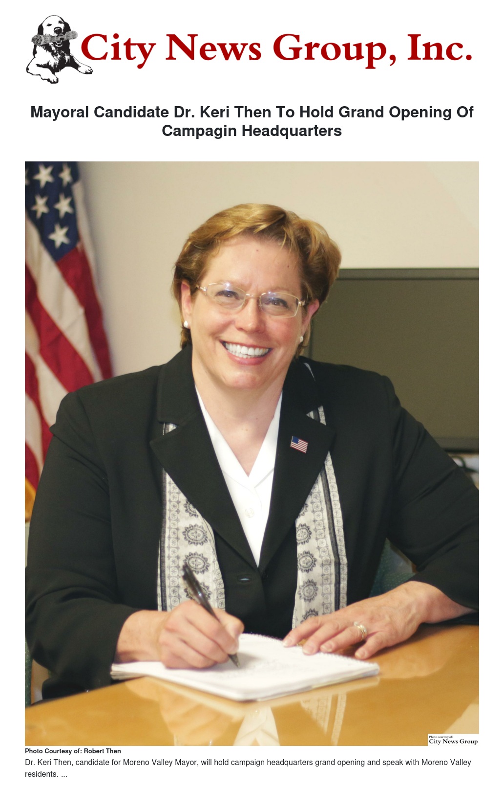 MORENO VALLEY>> Dr. Keri Then, candidate for Moreno Valley Mayor, announced the upcoming grand opening of her campaign headquarters.