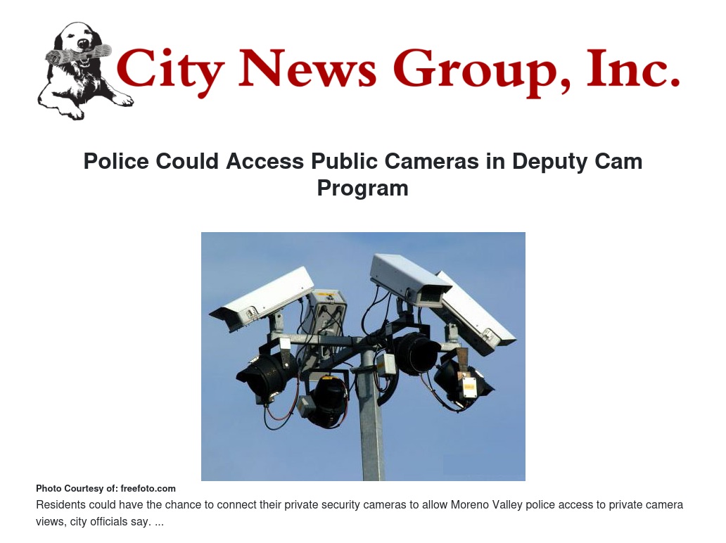 The city worked with the Avrio RMS Group, an IP-surveillance solutions firm that has helped establish deputy cam programs throughout the country, to institute the Citywide Camera System and provide the additional gateway devices that will allow Moreno Valley police to access the participating private cameras.