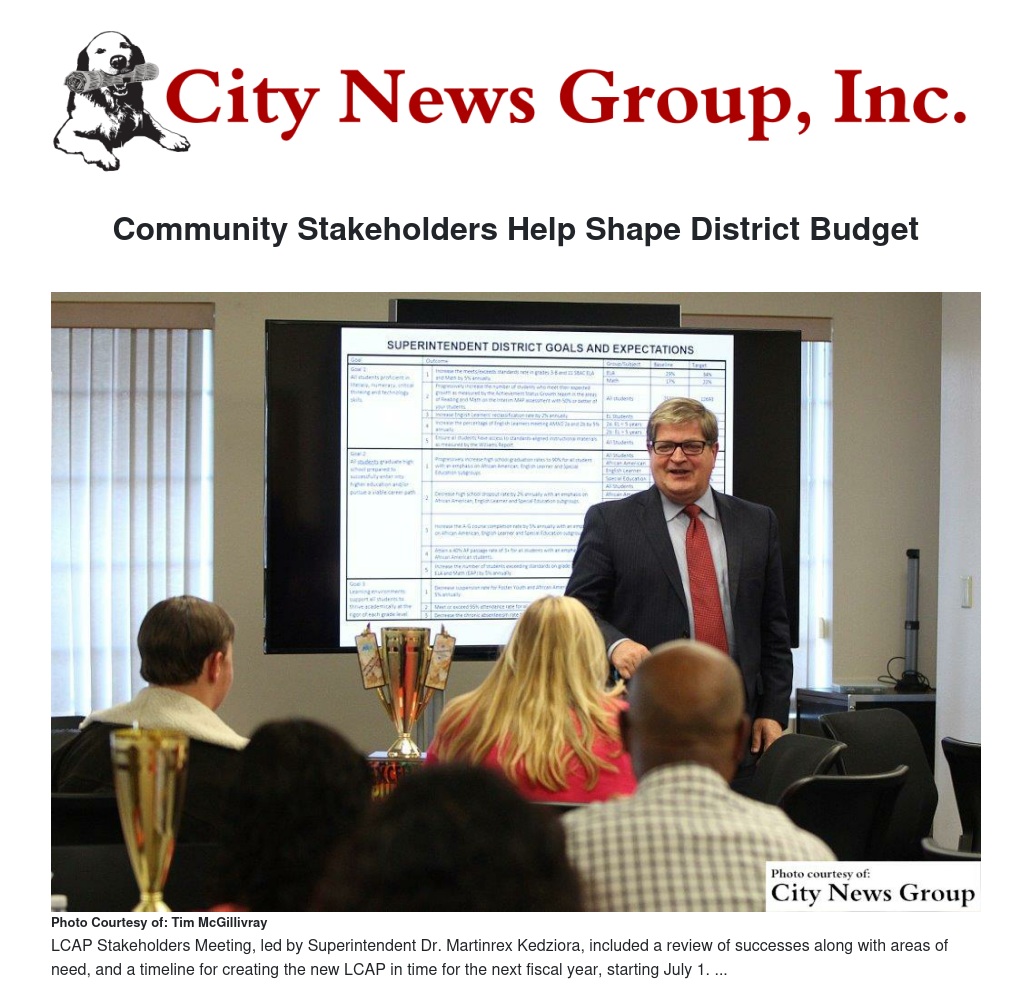 The recent LCAP Stakeholders Meeting, led by Superintendent Dr. Martinrex Kedziora, included a review of successes along with areas of need, and a timeline for creating the new LCAP in time for the next fiscal year, starting July 1.