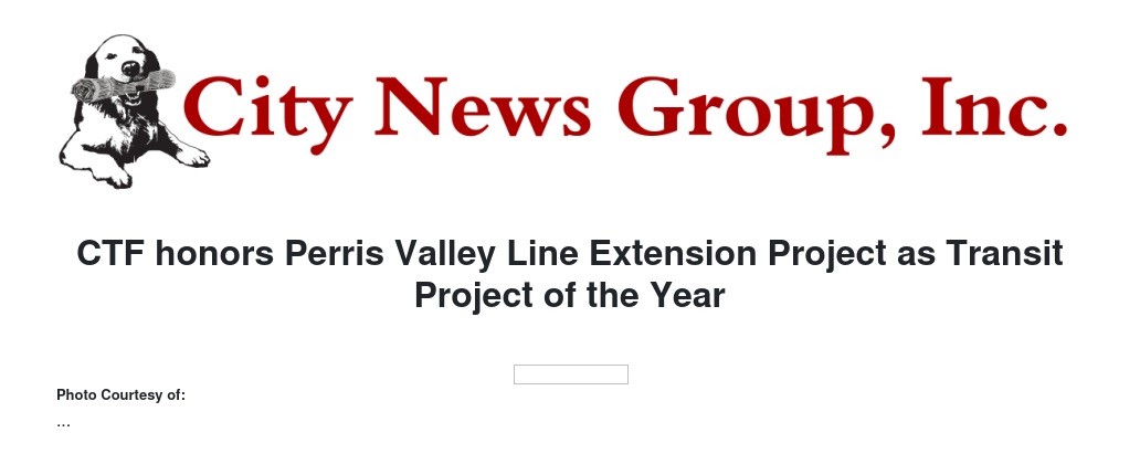 CTF honors Perris Valley Line Extension Project as Transit Project of the Year