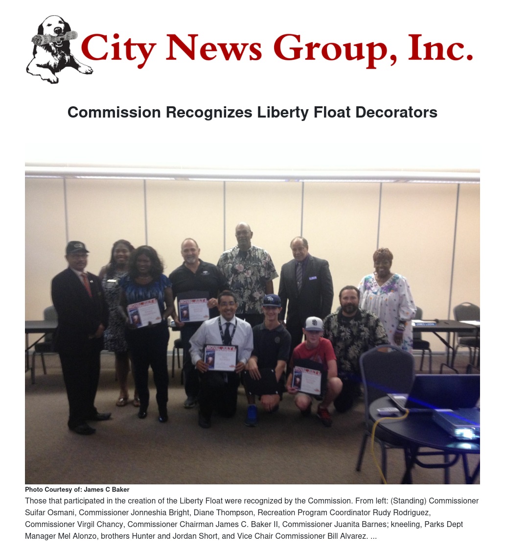 On Sept. 11, the Moreno Valley Parks & Recreation Commission recognized the helpers and decorators of this year's Sweepstakes Award Winner, The Liberty Float.