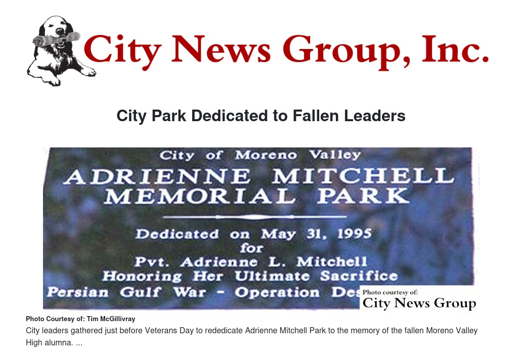 City Park Dedicated to Fallen Leaders