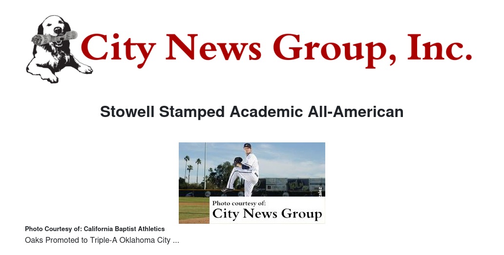 RIVERSIDE, Calif. - Not far removed from being named a three-time All-American for his exploits on the field, California Baptist University's Dylan Stowell was named an All-American for his performance in the classroom and on the mound on Thursday.