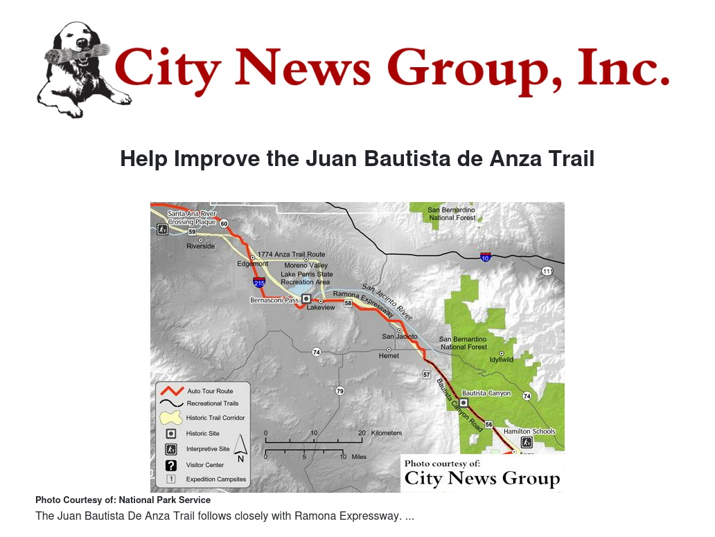 For more information on meetings for the on the local branch of the Juan Bautista de Anza Trail please call Tony Hetherman, at (951) 413-3163