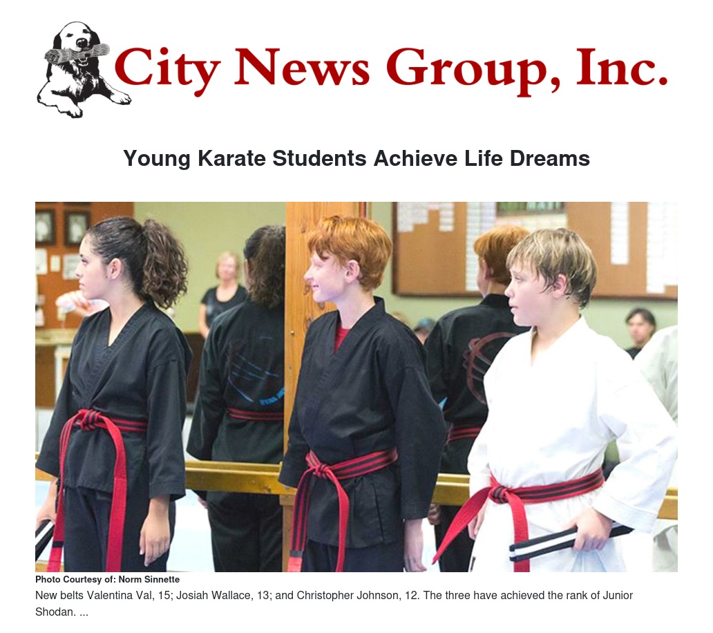 Three young karate students achieved a lifelong dream on Oct. 4. After years of hard training, lots of sweat and dedication paid off when Valentina Val, age 15, Josiah Wallace, age 13, and Christopher Johnson, age 12, achieved the rank of Junior Shodan.
