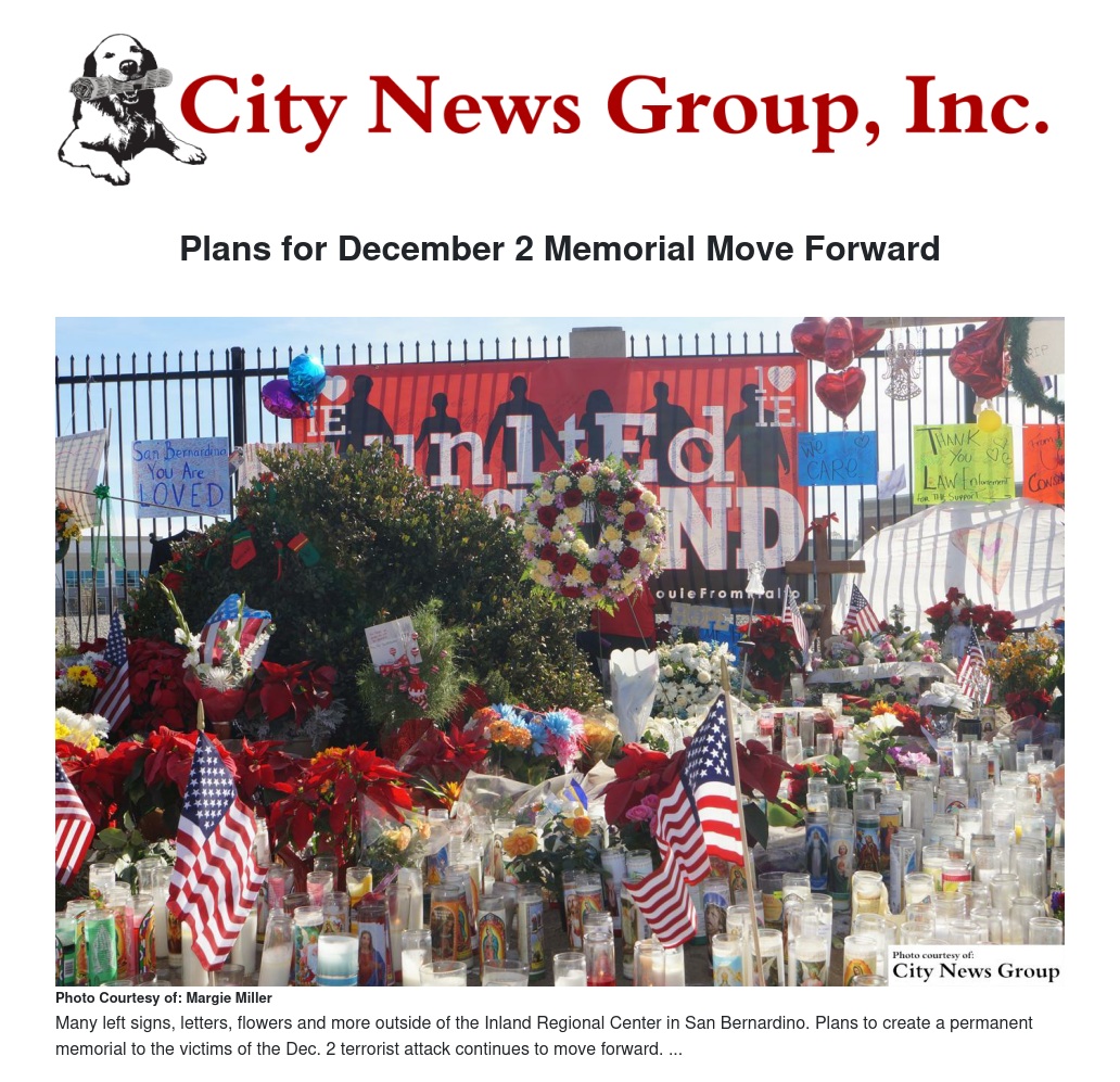 As the first anniversary of this tragic event approaches, the committee members said they want the public to know that work is progressing in a thoughtful and inclusive manner. They said the process will take time, but the result will appropriately and eternally reflect the many important and unique people, stories and lessons of Dec. 2, 2015.