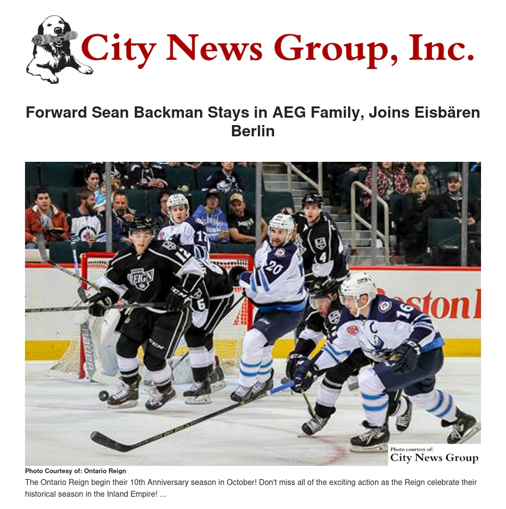 MORENO VALLEY>> The Ontario Reign, proud American Hockey League (AHL) affiliate of the Los Angeles Kings of the National Hockey League (NHL), announced today that forward Sean Backman has joined AEG’s Eisbären Berlin of the Deutsche Eishockey Liga.