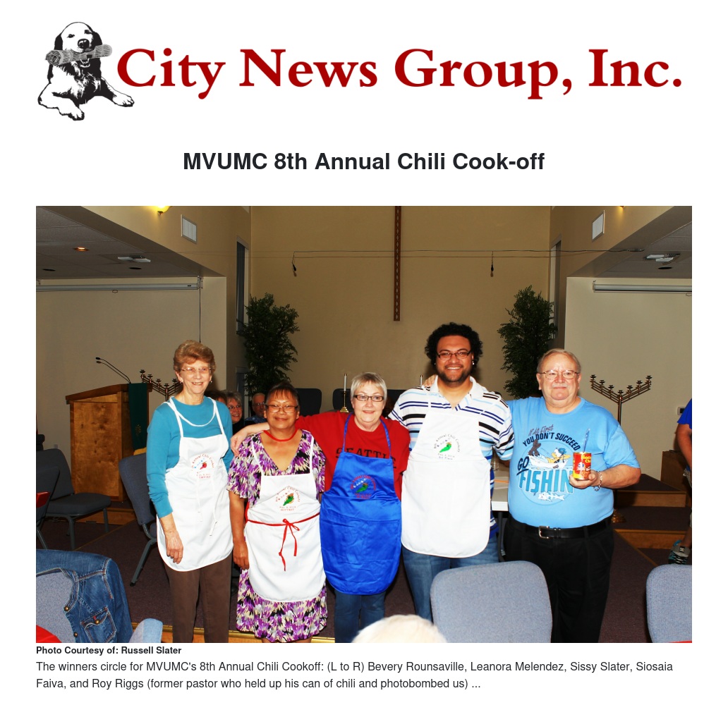 Sissy Slater, originally from Texas, started this event back in 2006. Participants were asked to prepare their favorite chili recipe and bring it to the church by 3 p.m. on the day of the event with judging to start promptly at 4 p.m. The competition was fierce!