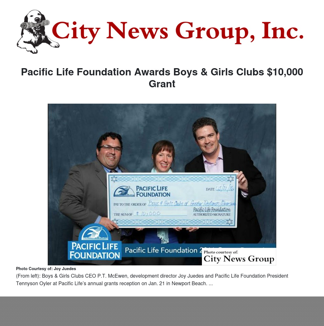 Pacific Life Foundation Awards Boys & Girls Clubs $10,000 Grant