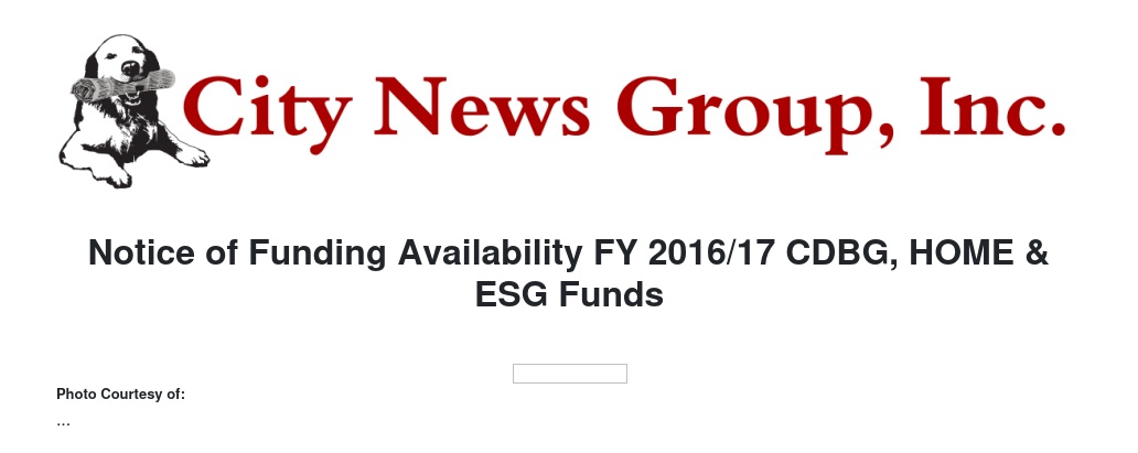 Notice of Funding Availability FY 2016/17 CDBG, HOME & ESG Funds