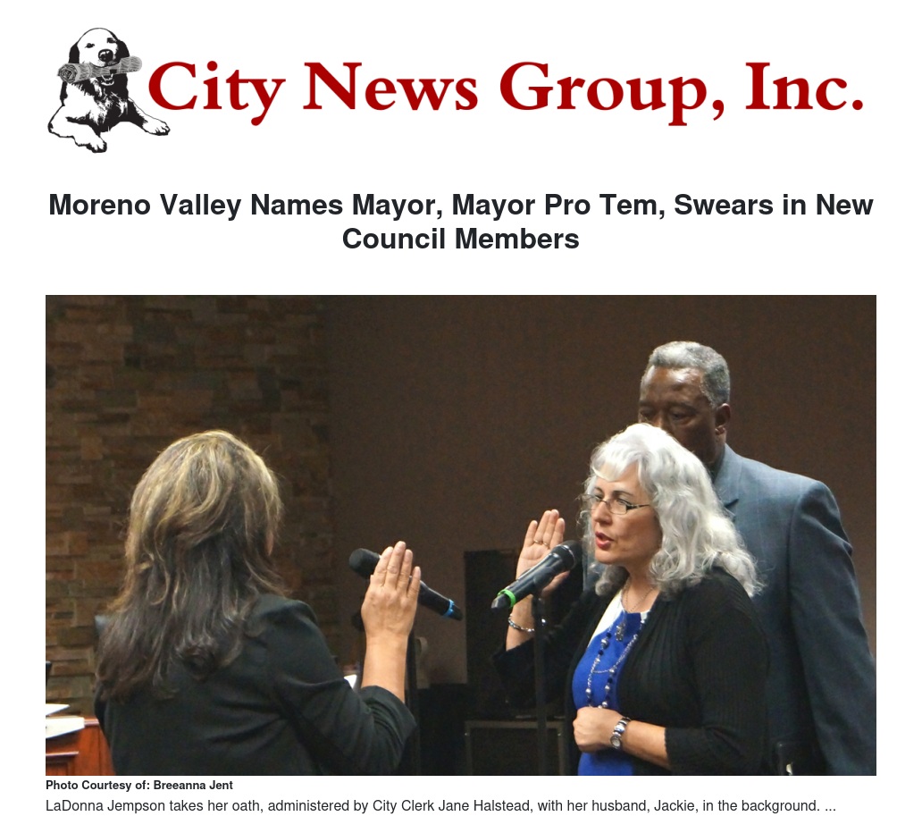 Moreno Valley Names Mayor, Mayor Pro Tem, Swears in New Council Members