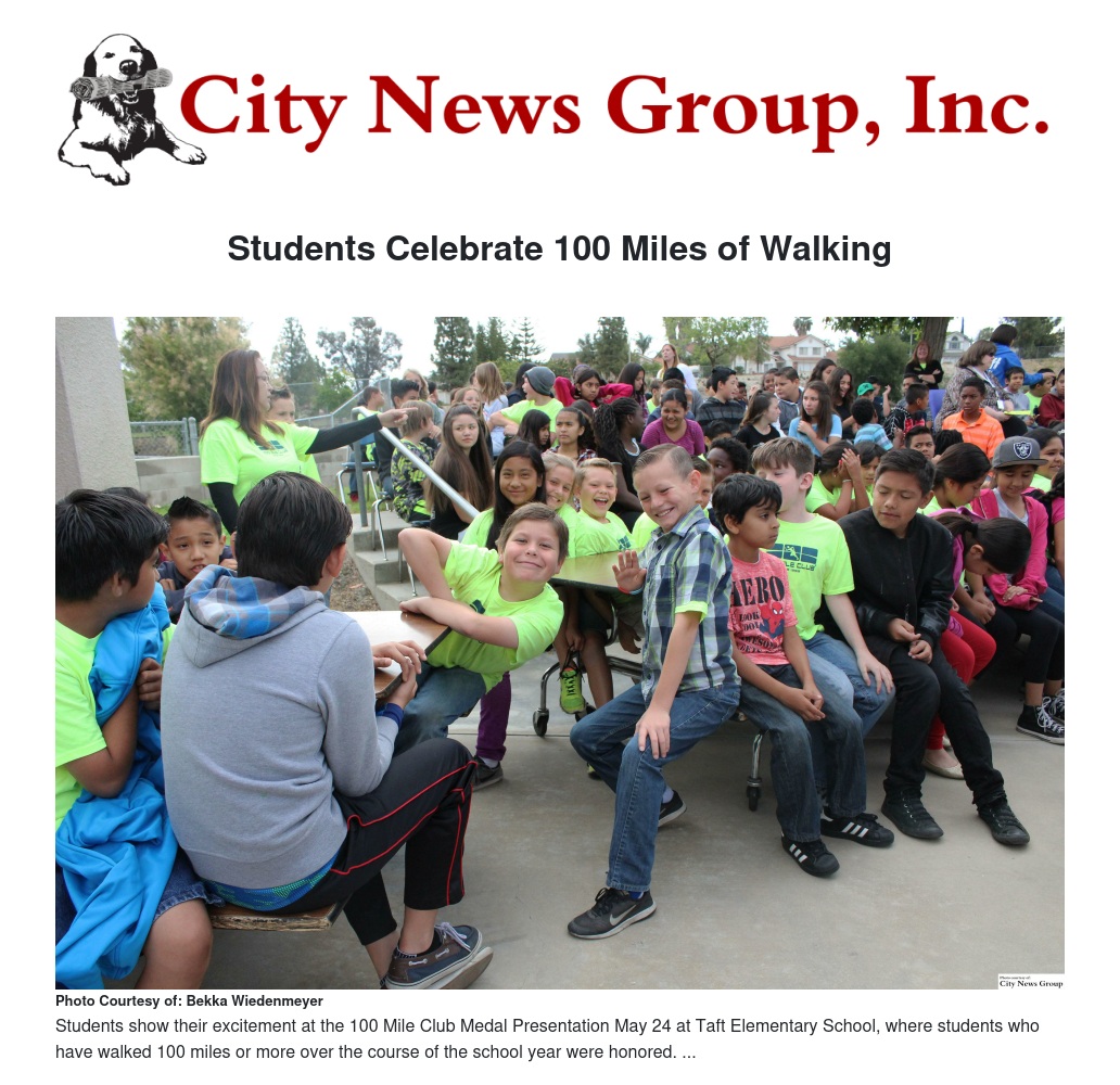 Taft Elementary, which is in its second year of participating as a 100 Mile Club school, thanks to schoolteacher Marisol Stokes and her 100 Mile Club team, has set designated times over the past year for students, parents, and teachers to “clock in” their miles.