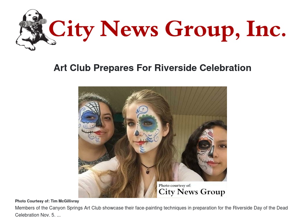 The community can see the members of the Canyon Springs Art Club work their magic Nov. 5 in Downtown Riverside.