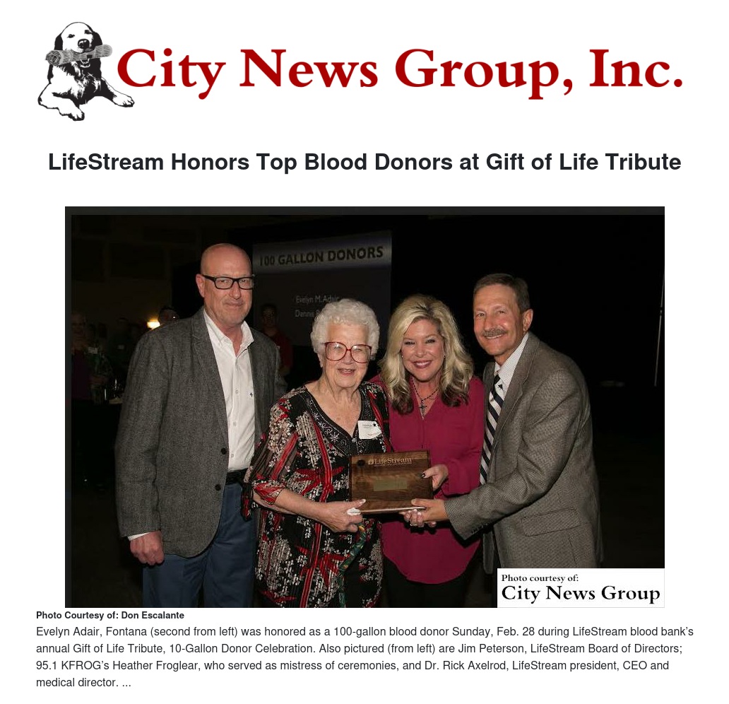 LifeStream proudly welcomed a record 1,200 guests to its annual Gift of Life Tribute, 10-Gallon Donor Celebration on Sunday, Feb. 28, at the Riverside Convention Center.