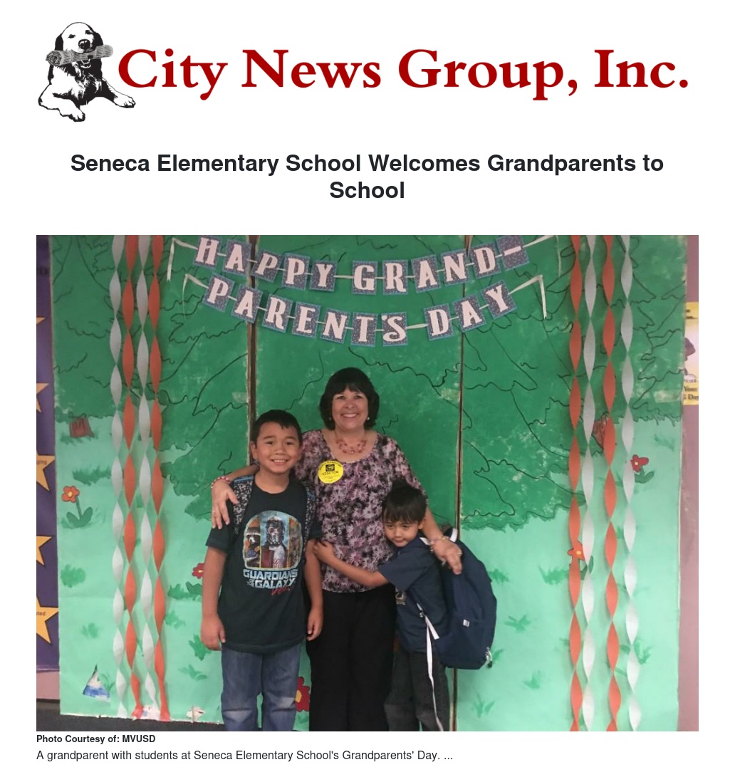 The school’s students then had the opportunity to show off their classrooms so the grandparents could see how Project Moving Forward, a school-wide vocabulary program, is helping Seneca Elementary School close the achievement gap. Seneca Elementary is a Project Moving Forward Demonstration School.