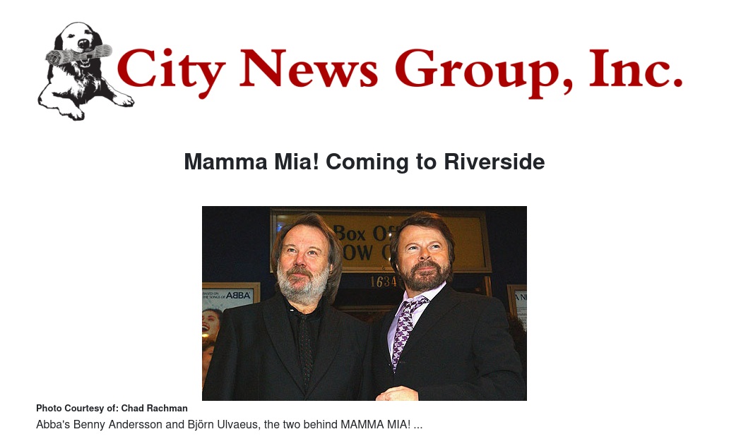 Mamma Mia! Coming to Riverside
