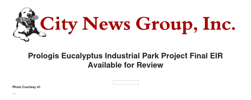 Prologis Eucalyptus Industrial Park Project Final EIR Available for Review