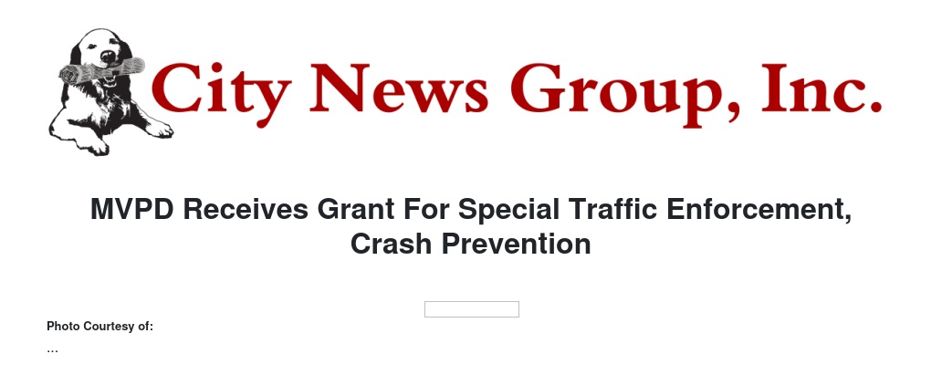 MVPD Receives Grant For Special Traffic Enforcement, Crash Prevention