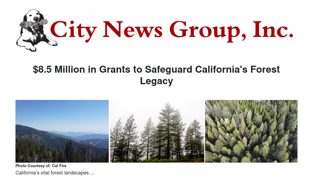 The California Department of Forestry and Fire Protection (CAL FIRE) California Forest Legacy Grants Program has selected four projects to receive over $8.5 million in state funding for the acquisition of conservation easements and fee title for working forestlands.
