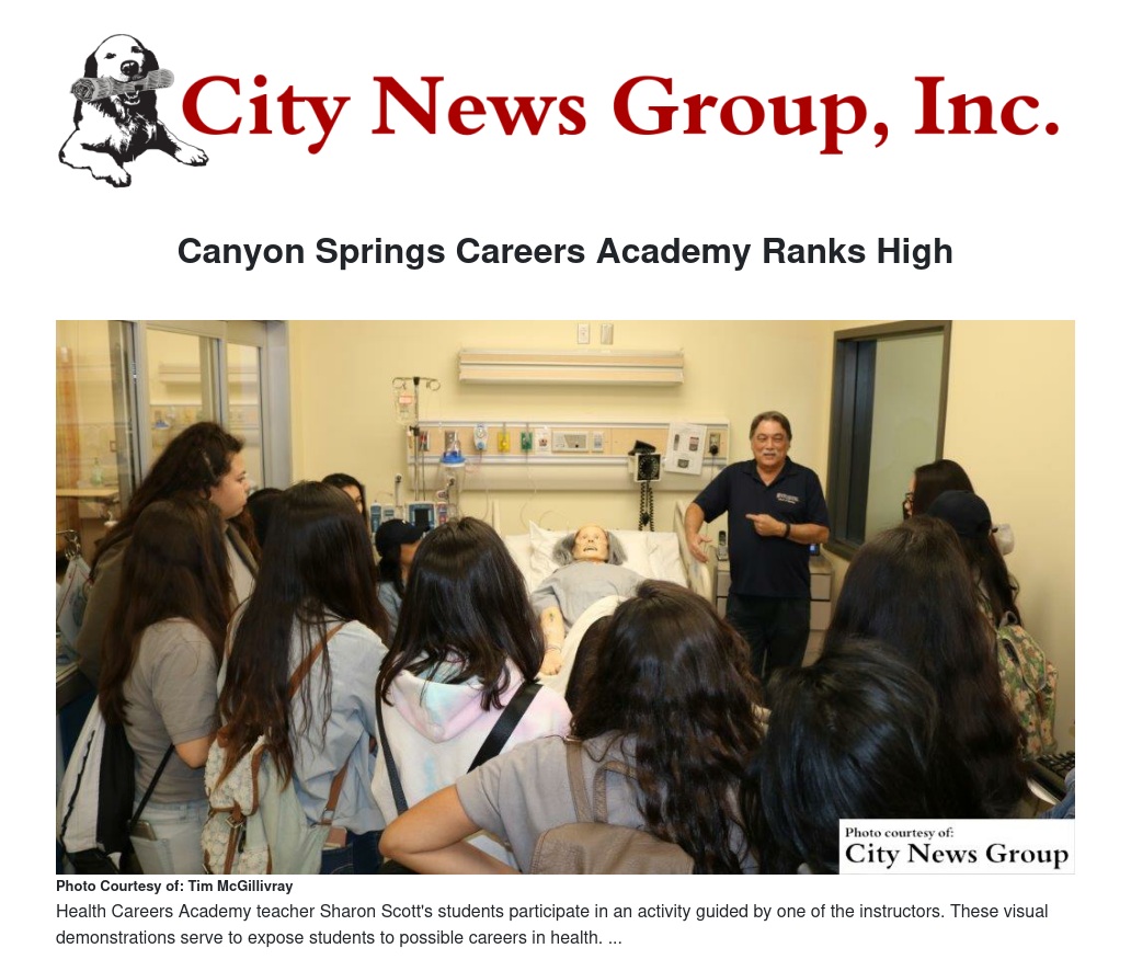 MORENO VALLEY>> The Health Careers Academy at Canyon Springs High School has been chosen by the state Department of Education as a 2017 California Partnership Academies “Distinguished Academy,” ranking it among the best high school programs in California that mix core academics and career-technical education.