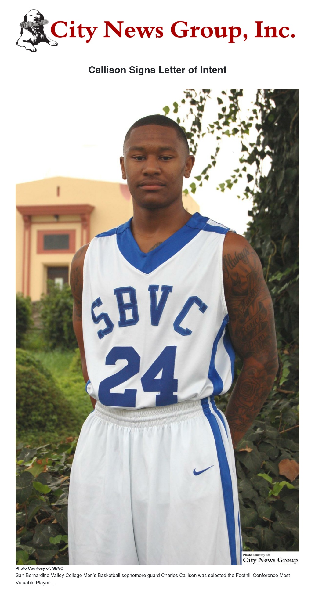 San Bernardino Valley College Men’s Basketball sophomore guard Charles Callison (Moreno Valley Canyon Springs) has signed a letter of intent to play for Washington State University next season.