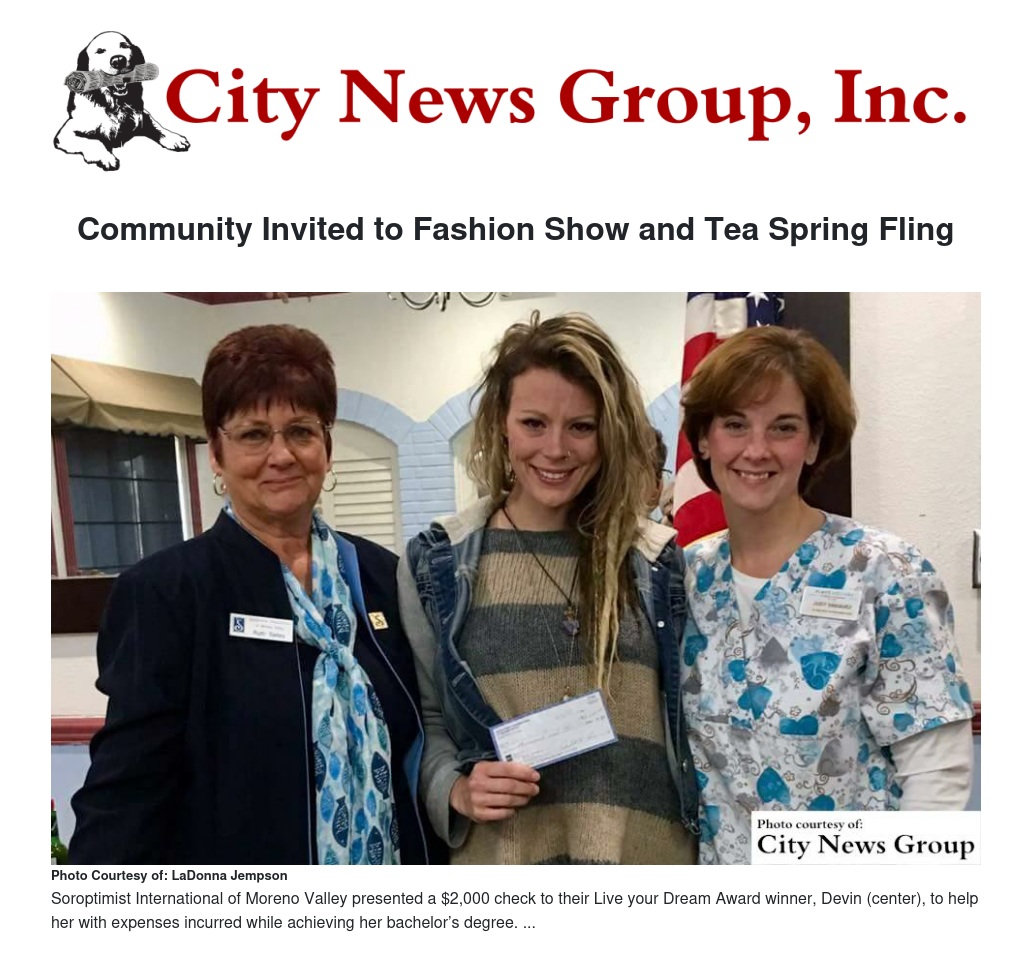 These types of programs are the reason why the Soroptimists schedule Fundraising events such as the upcoming 29th Annual Fashion Show and Tea Spring Fling on Saturday, March 11 at 1 p.m.