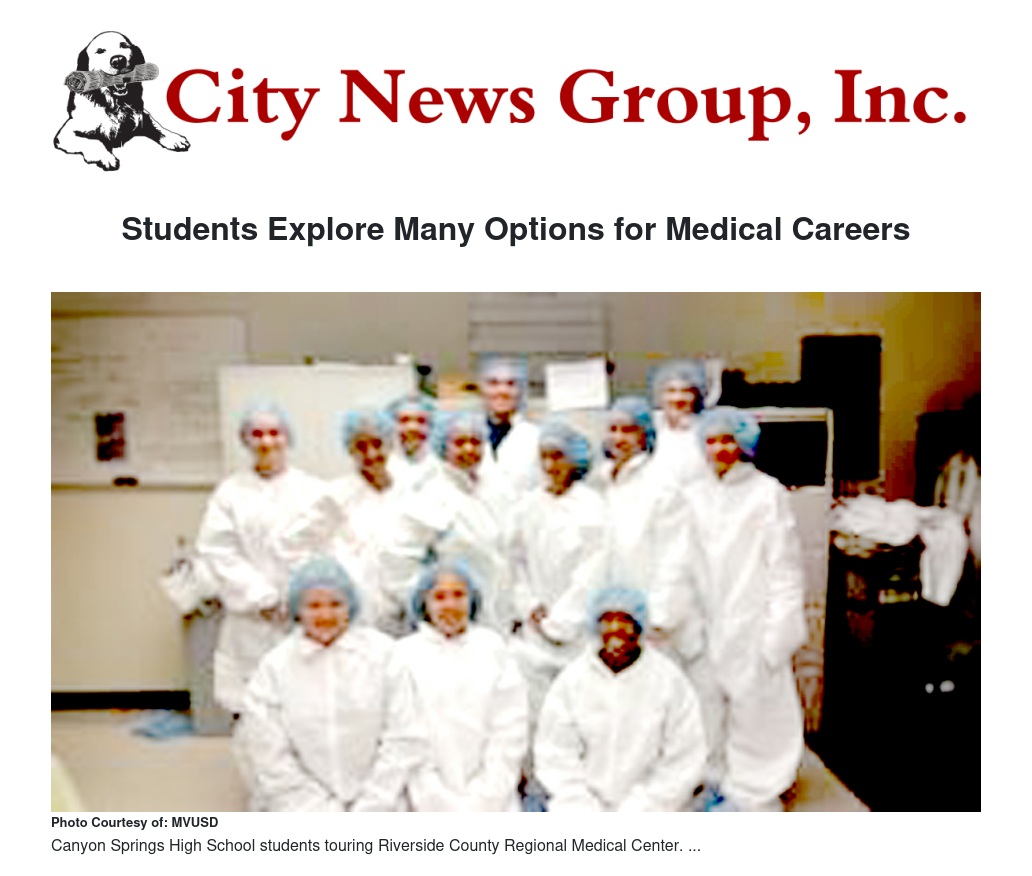 Riverside County Regional Medical Center recently gave a tour to 24 freshmen members of the Canyon Springs Health Careers Academy.
