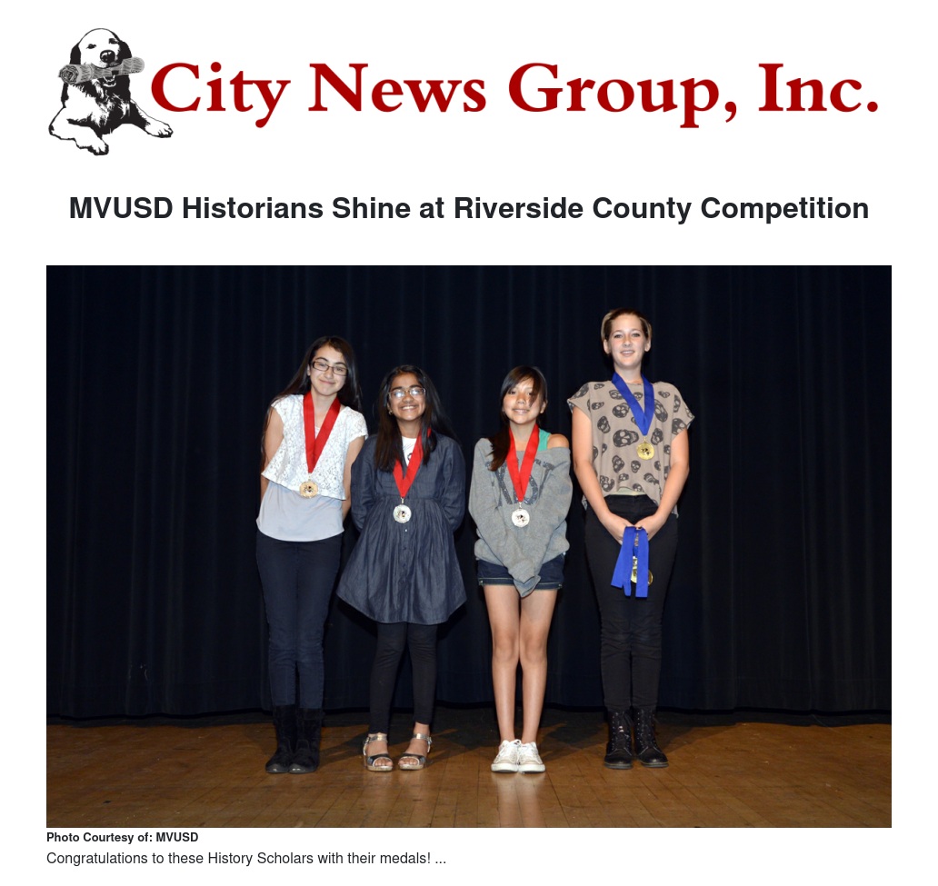 History scholars from Vista Heights Middle School and North Ridge Elementary claimed an impressive nine medals at the recent Riverside County History Day competition.