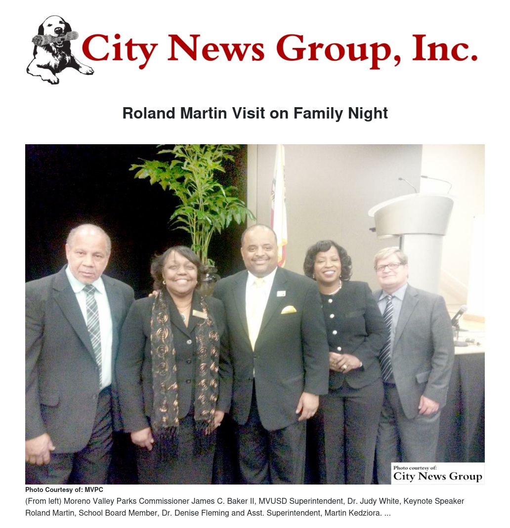 Renown CNN and radio talk show host, Roland Martin, was the keynote speaker at the African American Event held on April 8, 2015 at the Moreno Valley Conference and Recreation Center and presented by the African American Advisory Council (AAAC) and the Moreno Valley Unified School District.