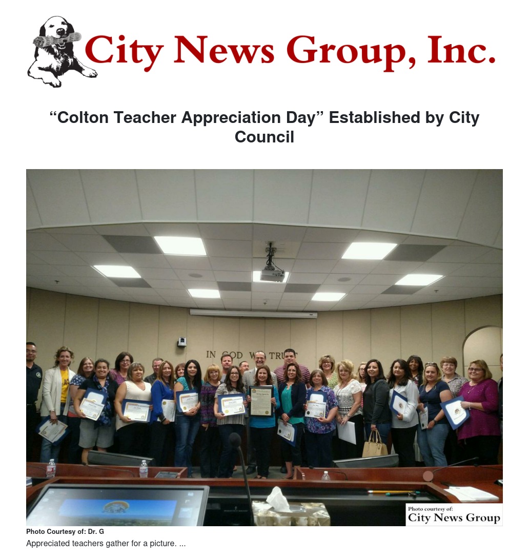 “Colton Teacher Appreciation Day” Established by City Council