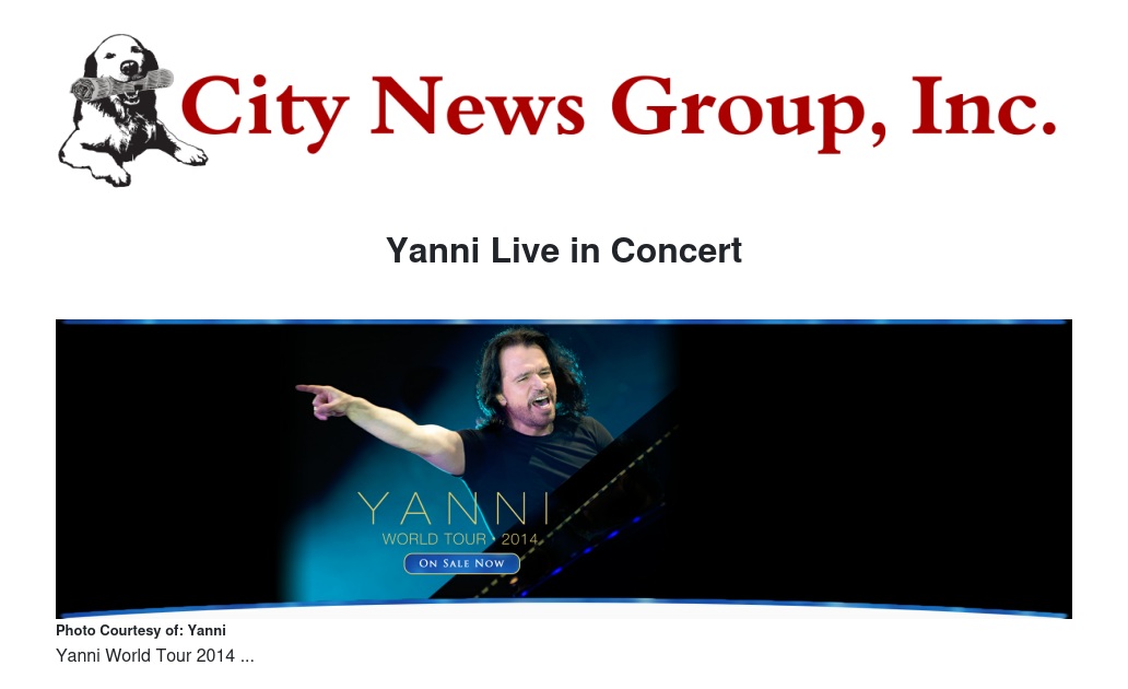 World-renowned pianist and composer Yanni will perform at the Fox Performing Arts Center on Wednesday, September 17 at 7:30 p.m. (doors at 6:30 p.m.).