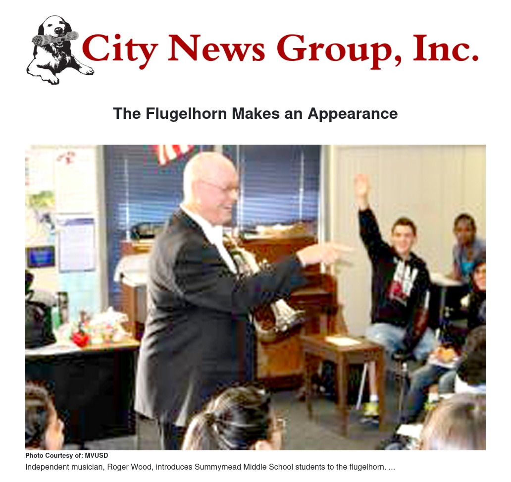 One of the guests this year was, independent musician Roger Wood, who began playing the trumpet professionally at age 15. At the event he introduced students to the flugelhorn, the trumpet’s more mellow cousin.