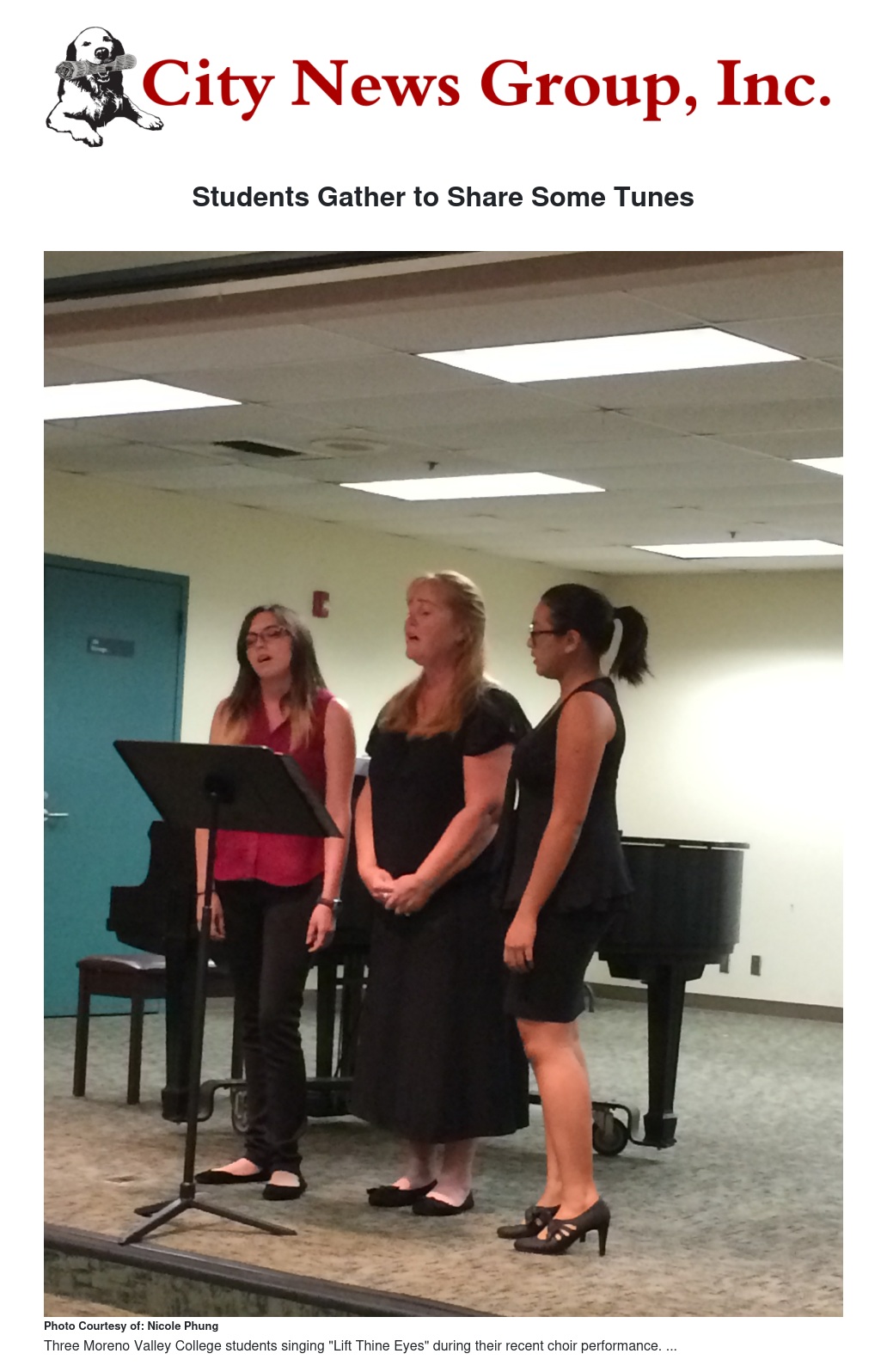 Moreno Valley College Choir gathered on Dec. 2 for a concert in the Student Services building. The concert featured ten songs sung by different members of the group, who are all students enrolled in Moreno Valley College music classes or Music Club.