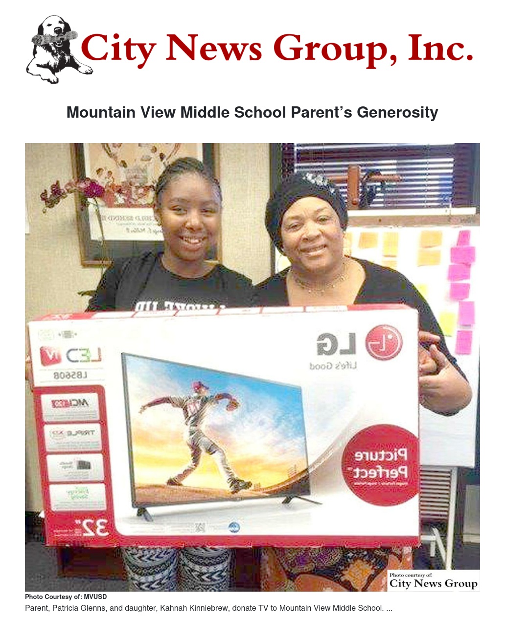 Mountain View Middle School can attest to that, as the school recently gratefully accepted a donation of a 32-inch TV to be used to support the school’s Families for College parent nights. It’s from parent Patricia Glenns, whose daughter, Kahnah Kinniebrew, attends Mountain View.