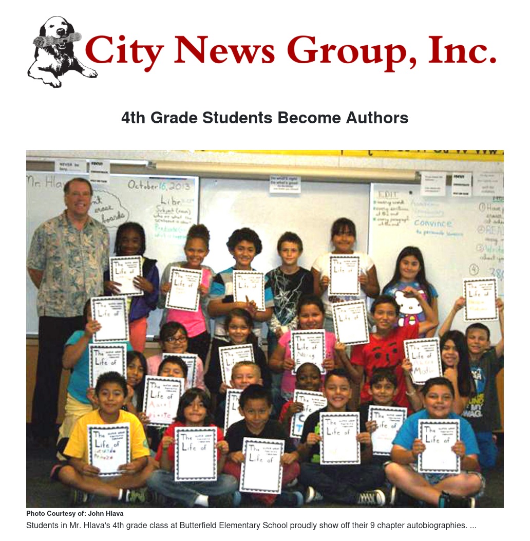 Students in John Hlava's fourth grade class at Butterfield Elementary School in Moreno Valley have become young authors. They have written their nine-chapter autobiographies about their short lives and past experiences, along with their future hopes and wishes.
