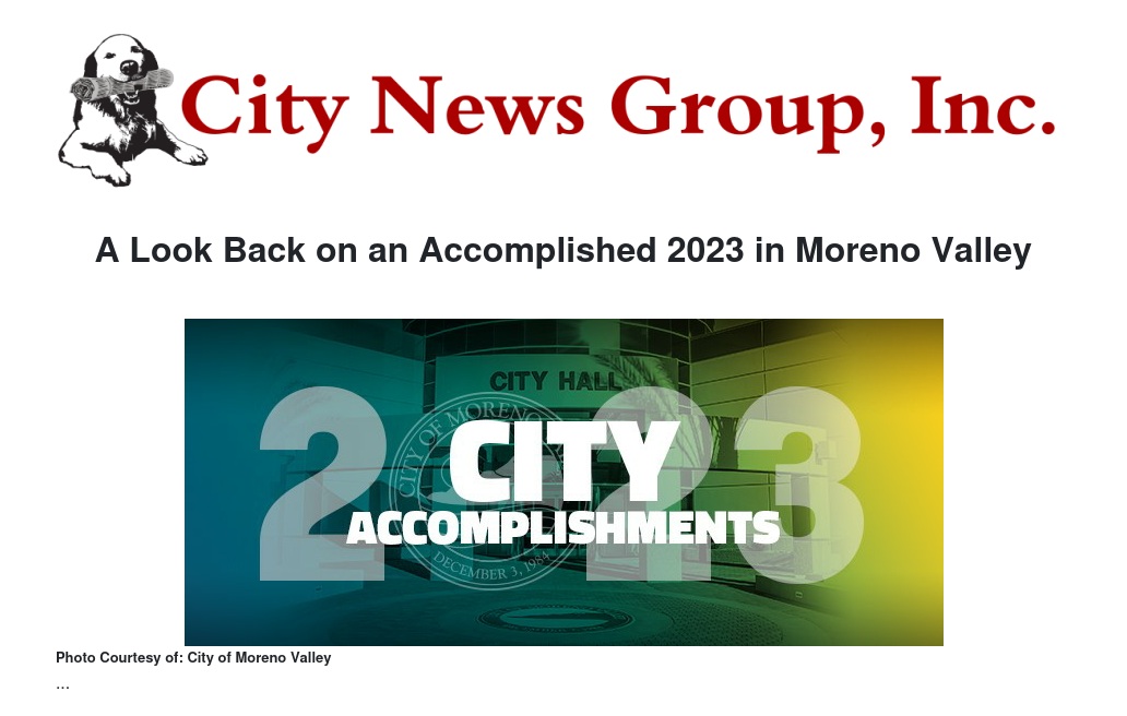 A Look Back on an Accomplished 2023 in Moreno Valley by City of Morning Valley - City News Group, Inc.
