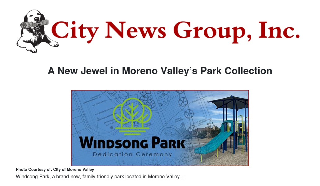 “Windsong Park is a shining example of our commitment to growing Moreno Valley responsibly,” said Mayor Ulises Cabrera. “Windsong is another addition to our impressive collection of parks, and it’s a testament to the pride we take in our City and our dedication to providing safe, welcoming spaces for all our residents. I encourage everyone to visit the park and enjoy all that it has to offer.”