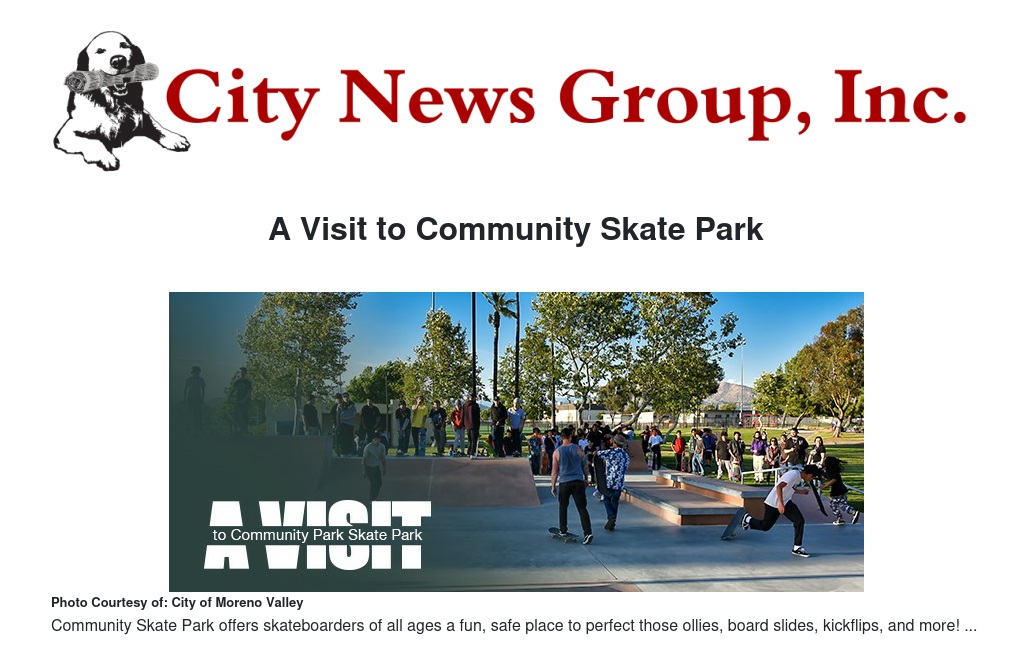 This week, we pay a visit to Community Skate Park, home to one of Moreno Valley's family-friendly skate parks, with features and amenities to make the skating experience safe and fun for everyone, whether you are a beginner learning the basics, or a more experienced skateboarder looking to hone your skills.