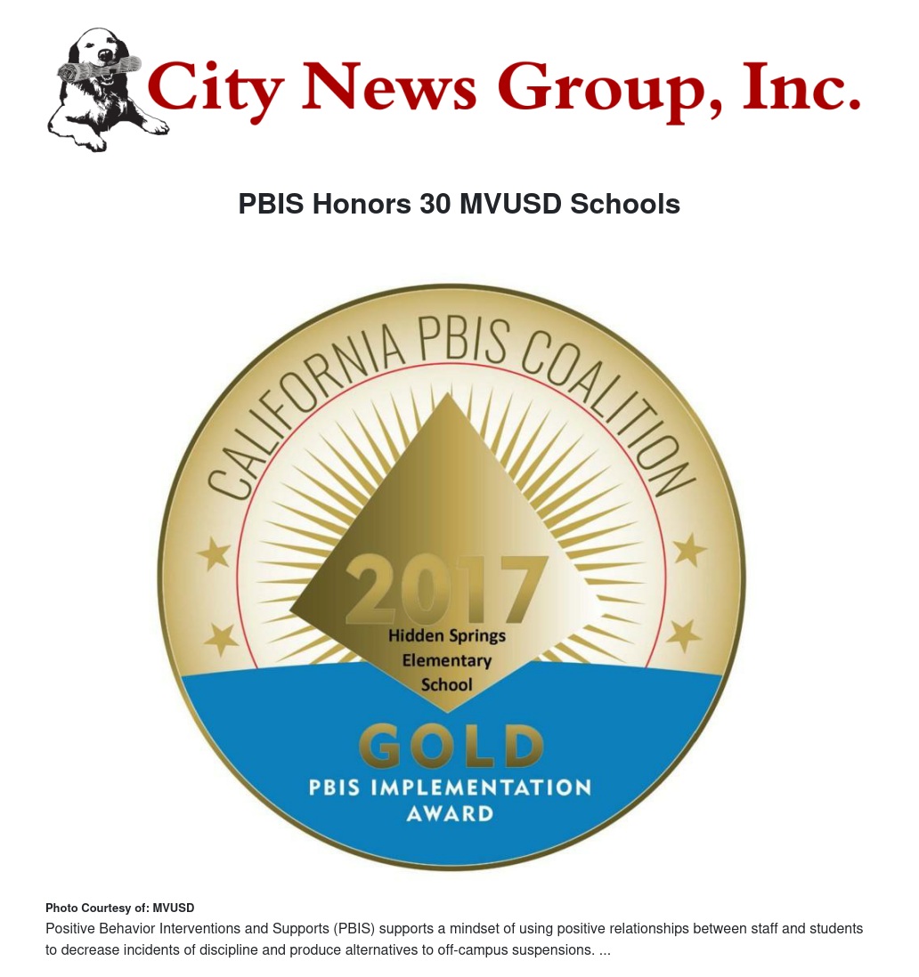 PBIS Honors 30 MVUSD Schools by MVUSD - City News Group, Inc.